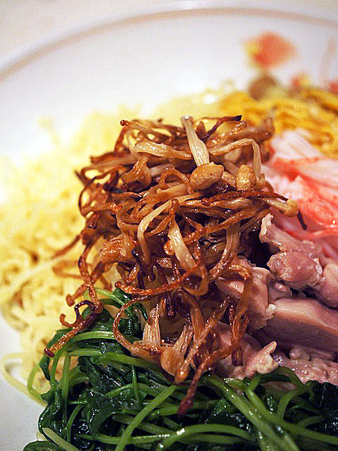 特に焦がす寸前まで焼いたエノキは、うま味をギッシリ中に蓄えそれだけ食べるとパリパリ乾いた感じがうまく、冷やし中華の醤油のタレを吸い込みトロンととろみ、粘り気出してくる…、麺に絡んでおいしことったらありゃしない。