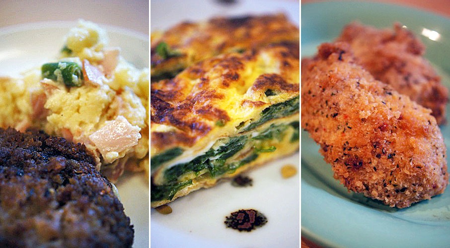 ハムに玉ねぎ、いんげん豆が入ったポッテリしたポテサラは、マヨネーズより塩と胡椒で味がついててだからホクホク、ポテトコロッケの中身みたいな味わいがある。