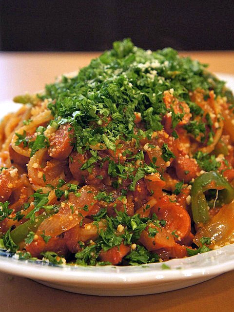 正統ナポリタンはケチャップだけでつくるもの、って思ってはいてけれど今日はなぜだかソースを仕込んでみたくなったから。