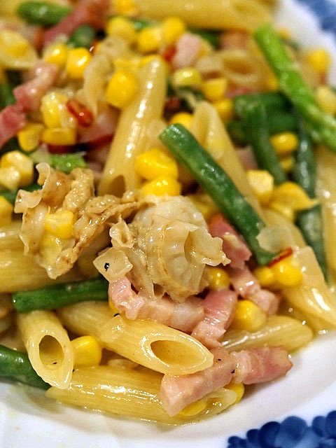 タプンタプンと鍋を揺すってとろみをつけて、味をペンネにしがみつかせて出来上がり…、こりゃ、我ながら上出来の見事な出来栄え、オキニイリ。