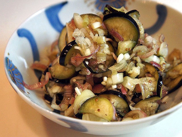 冷蔵庫の中にそろそろ使わなくっちゃいけない茄子が転がっていて、それも一本。