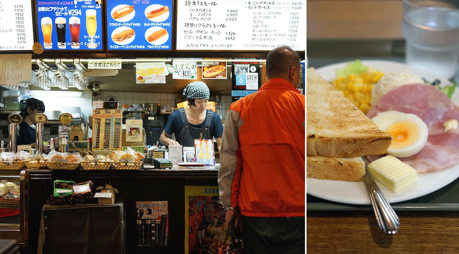 カウンターの奥にはコーヒー。手前にビールのサーバーがある。こんな自由なお店がずっと何十年もココにあるのがオモシロイ。