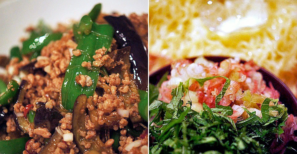 塩と胡椒をほどこした豚ひき肉をニンニクと唐辛子の風味を出した油でよぉく炒めていくと、滲んだ油が透き通ってくる…、そこに具材を投入しオイスターソースとチキンストックで味整えて春雨くわえて余分な水気を吸い込ませたモノ。