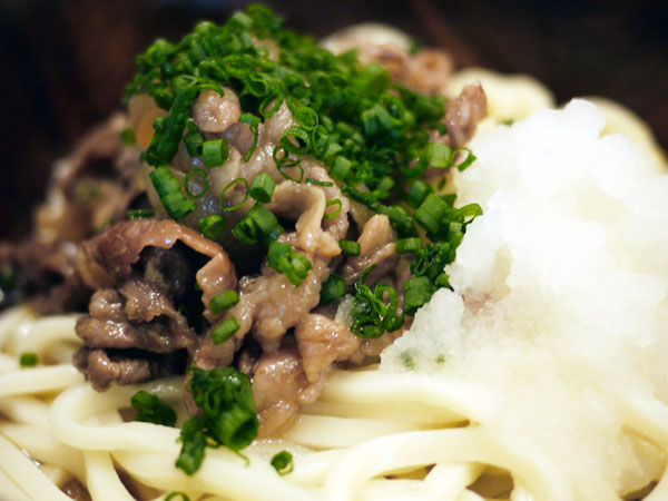 お椀の中に麺つゆを入れ、大根おろしを軽く搾った搾り汁で割りそこにうどんをクルンと入れる。