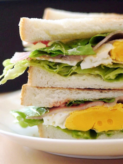 蓋して弱火で黄身までしっかり火を通し、さてサンドイッチの仕上げにはいる。