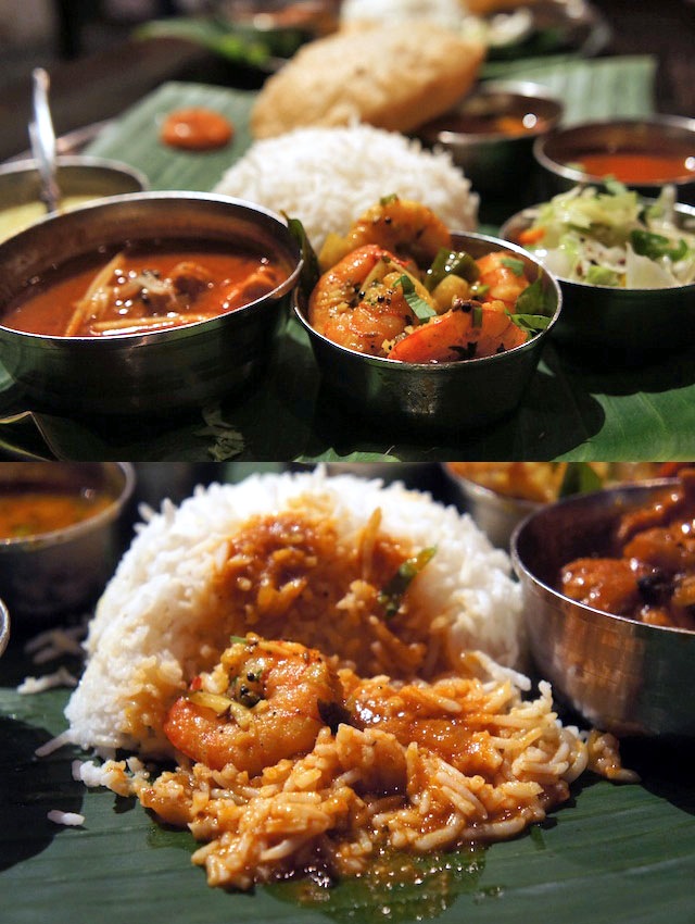 むしろ香りを強く仕立てたエビのカレーとそれらそれぞれを別に食べるのもおいしいけれど、一緒に食べると味が重層的になる。