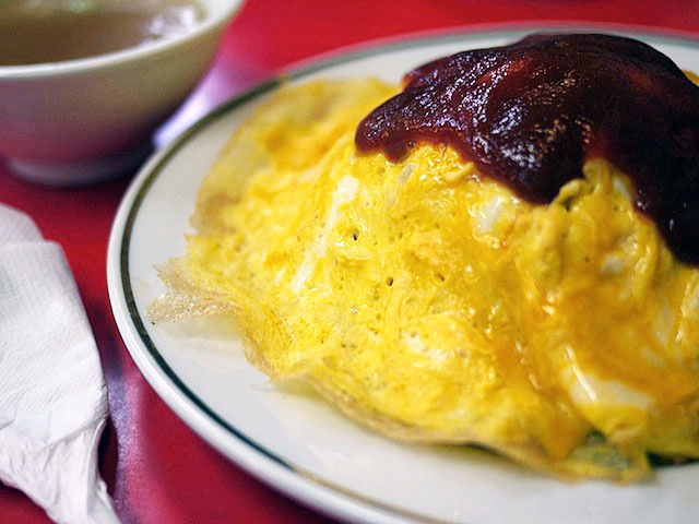 上にケチャップ、プチュって仕上がるいわゆるオムライスとは似ても非なる姿形に、味、食感。