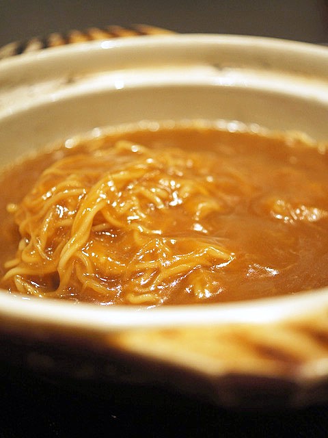 素焼きでなかなか他にみないステキな陶器のお皿だったんだけど、今日は煮込み麺がやってくるのと同じ土鍋でやってくる。
