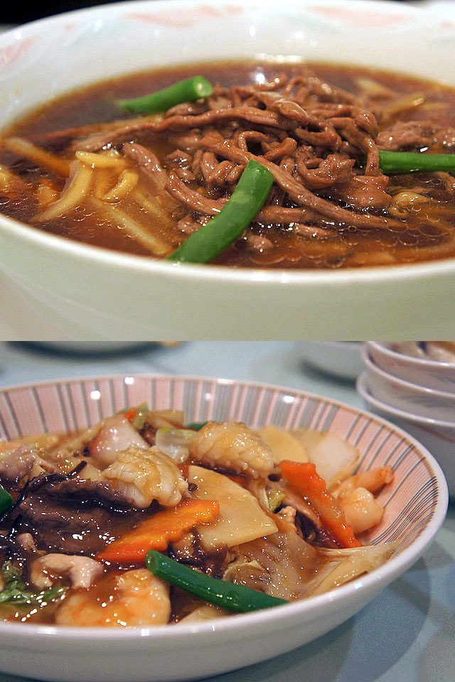 そして麺…、あんかけ焼きそばと牛肉麺。