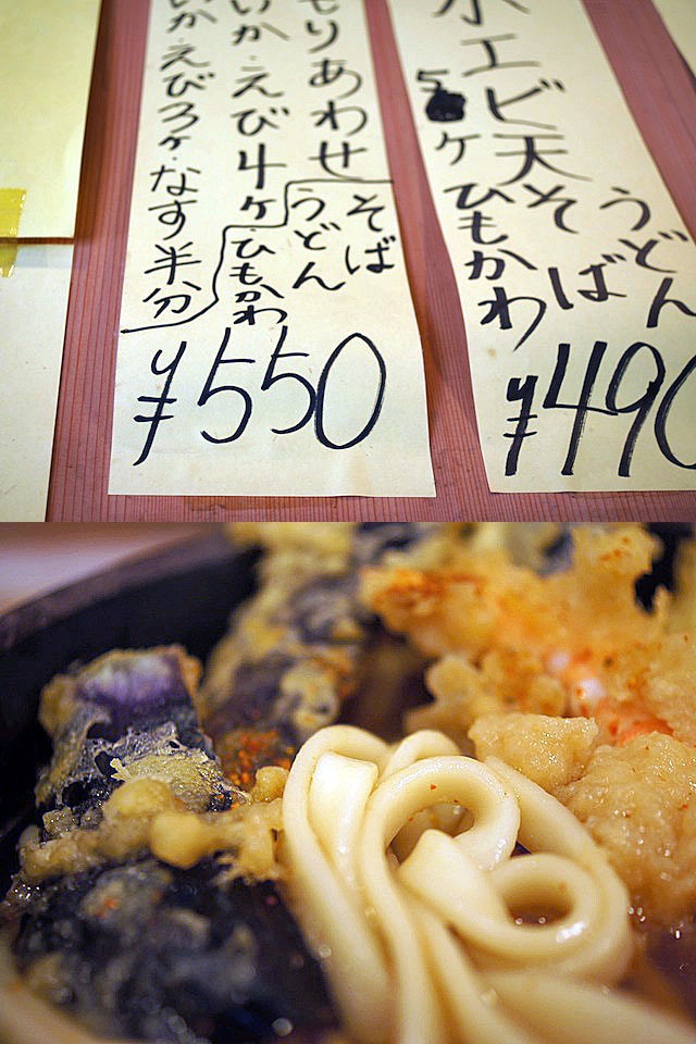 あるいはエビとイカと茄子の天ぷらがドッサリのっかる。