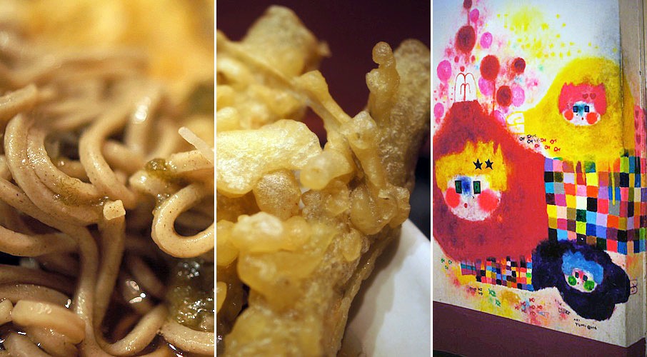 ゲソの天ぷらや生姜のかき揚げと、どれもみてるとおいしそう…、また来なくちゃって思いながらズルズルハフハフ、オキニイリ。