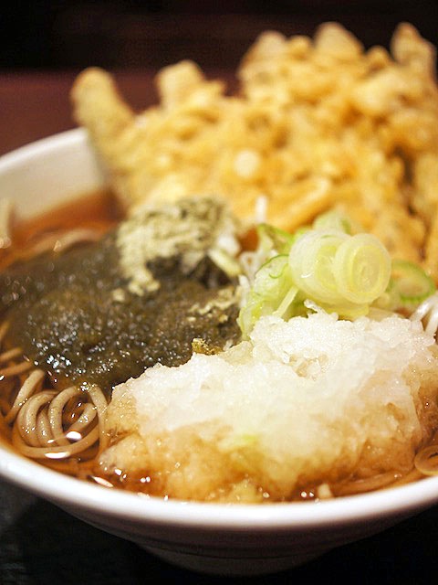 とろろ昆布と大根おろしをのせた蕎麦があるというので、それをたのんで試してみます。