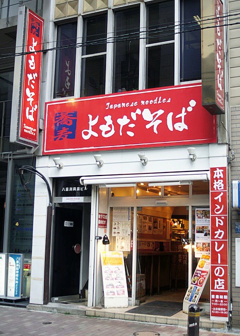 こりゃ来なくちゃってやってきて、お店の前をしげしげ見るとそば屋といいつつ「本格インドカレーのお店」と看板まであり、これはなるほど「よもだなお店」(笑)。
