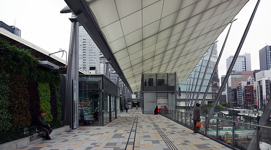グランルーフという大屋根が駅前通路を覆うようにできあがり、そこに飲食店や小売のお店が幾つかならんで商業施設をなしている。