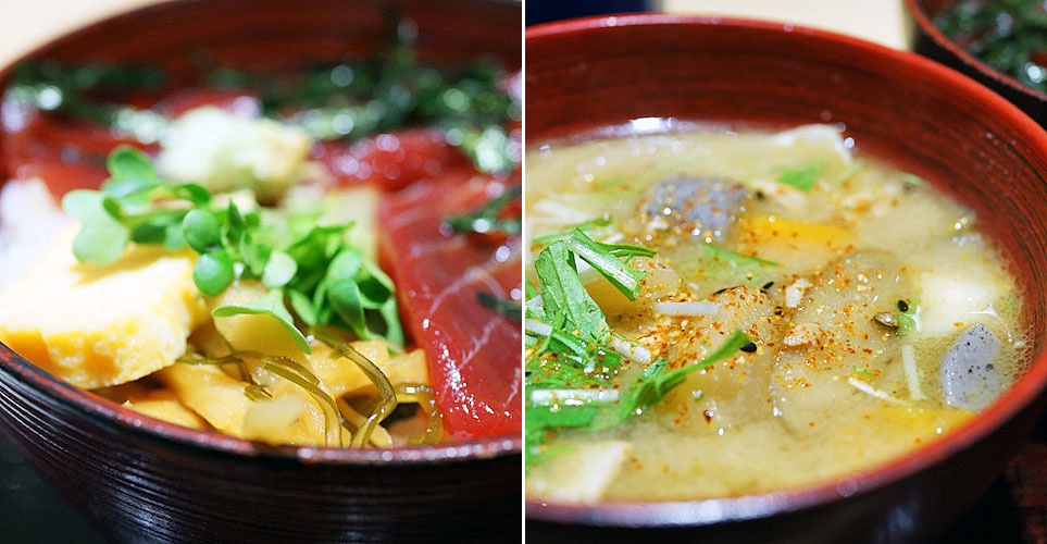 まぐろの漬け丼と豚汁のセットをたのむ。