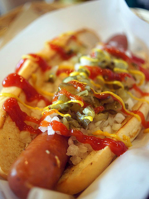 その分、テーブルの上に刻んだオニオン、ピクルスがちらかる感じがちょっと厄介…、ひと口食べてはテーブルをナプキン使って拭いつつ、それでもパクリとお腹に収める。
