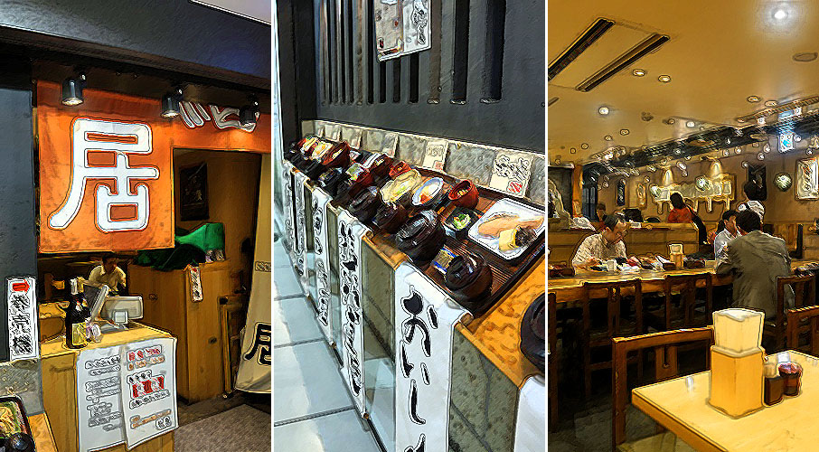 八重洲口側の地下街の中…、結構目立つ場所にありしかもお店の表の部分にサンプルが突き出すようにズラッと並ぶ。