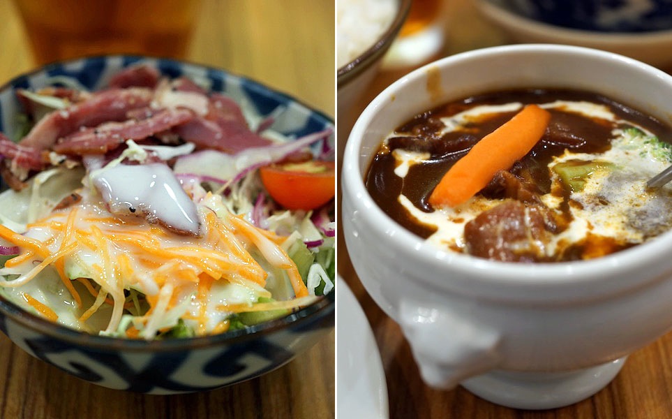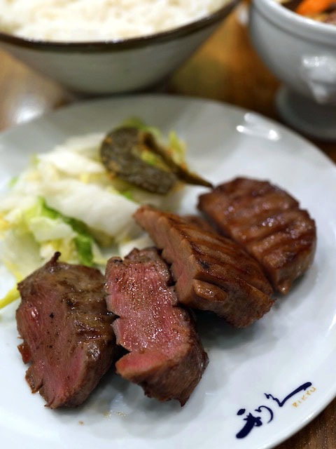 タンの旨みを受け止めて、しかも決して邪魔しないデミグラスソースとの相性がよくて、食べ始めるとメインのたん焼きほったらかして、こればっかりをハフハフ食べてしまうほど。麦のご飯にも相性もよきオゴチソウ。
