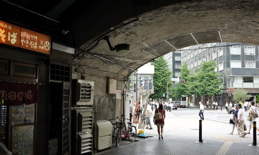 有楽町の駅の北側…、東京駅に向かう方向の山手線のガードの下。