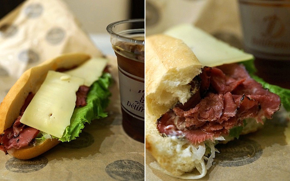 そしてやってきたコレ…、パストラミとチーズのサンドイッチ。