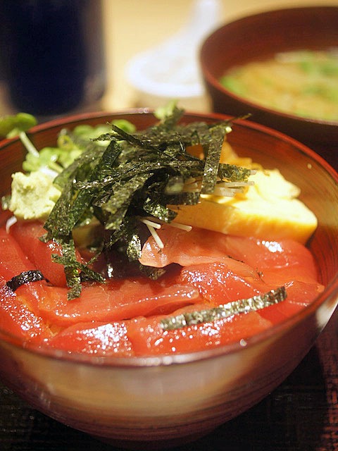 マグロを漬けた醤油ダレがしみたご飯がほんのりあったか。