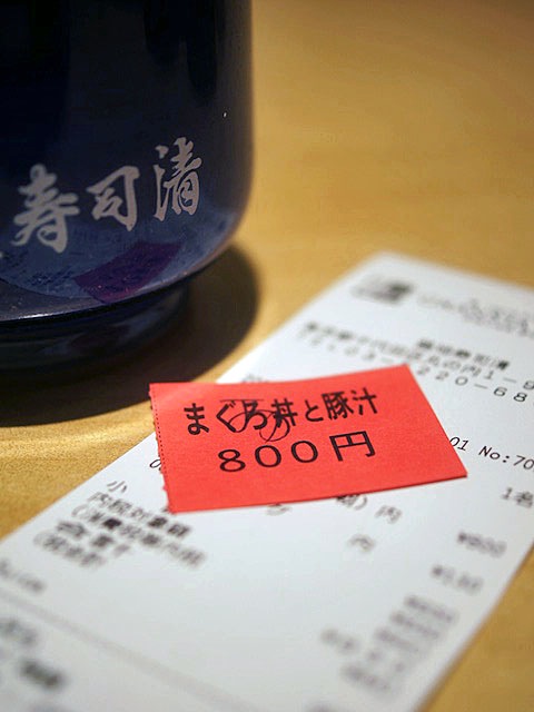 けれどラッキー…、漬けマグロ丼と豚汁のセットはまだある、それにする。