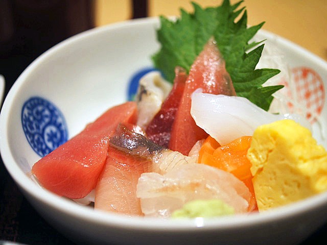 鯛の胡麻和えの定食と、一緒に追加で「刺身の盛り合わせ」。