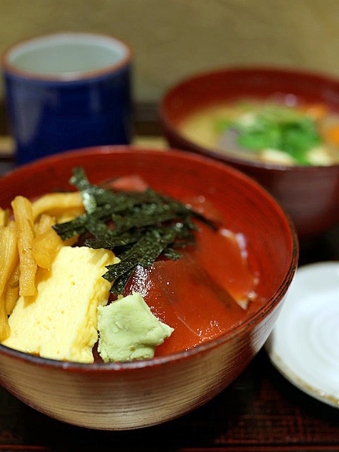 まずはマグロの切り身を味わい、そして熱々ご飯を舌の上にそっとおき、モグモグ味わい再びニッコリ…、あぁ、旨い。