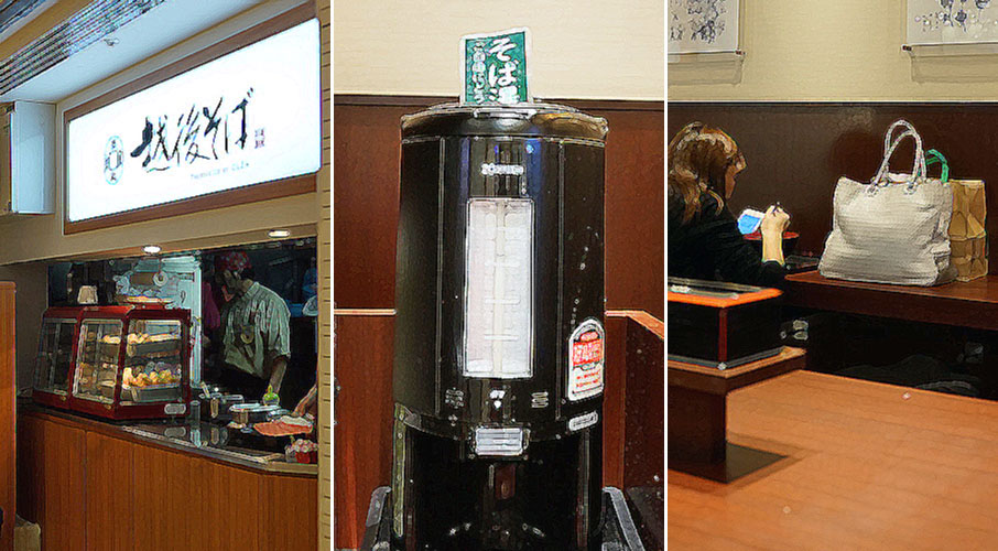 東京駅の丸の内側と八重洲口側をつなぐ通路に面してある店。立ち食いそばの「越後そば」。グループ会社がへぎそばの専門店をやっているというコトもあって、歯切れとコシのよい蕎麦を作ってくれる。
