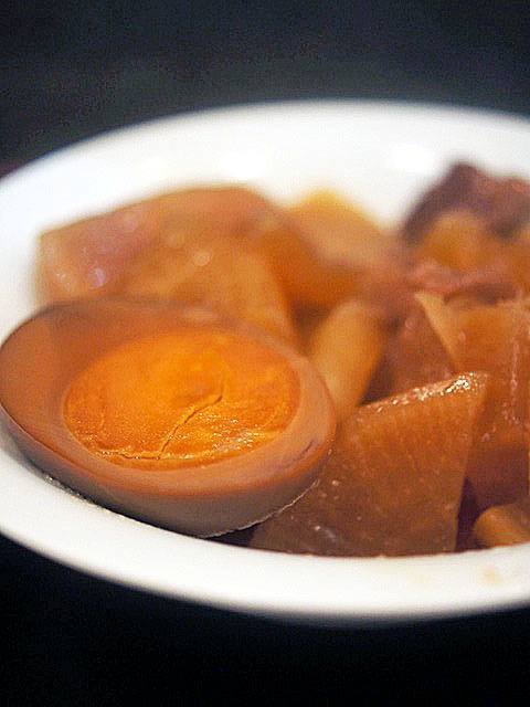 オモシロイのが、豆腐の煮汁も、大根、玉子を煮る汁も、しじみの汁も同じような出汁を使っているのだろうけど、それぞれ味わい違って飽きない。
