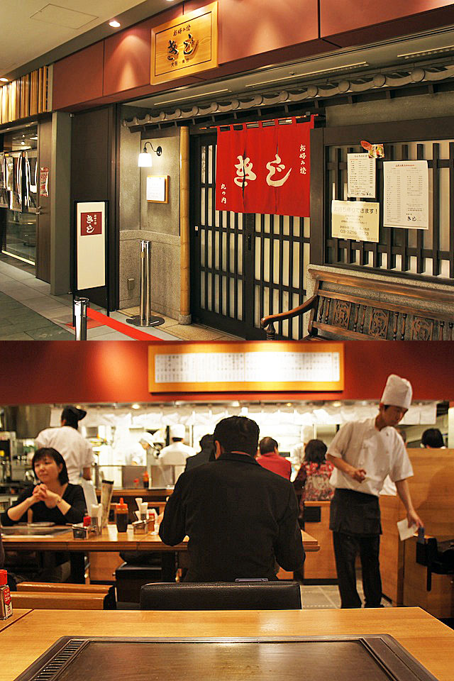 テーブル席にも鉄板が置かれているけど、お店の人がカウンターの大きな鉄板で焼いてくれるというシステム…、ちょっと時間がかかります。