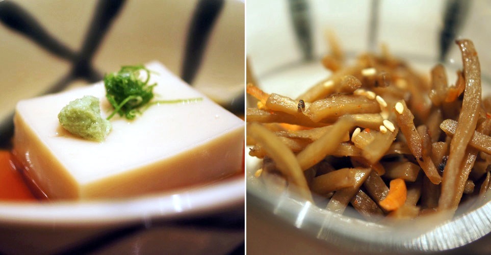 ネットリとしてけれどスベスベした胡麻豆腐…、鯛がまとった胡麻ペーストとまるで違ったスッキリした味わいで、小鉢のきんぴらごぼうも上品。