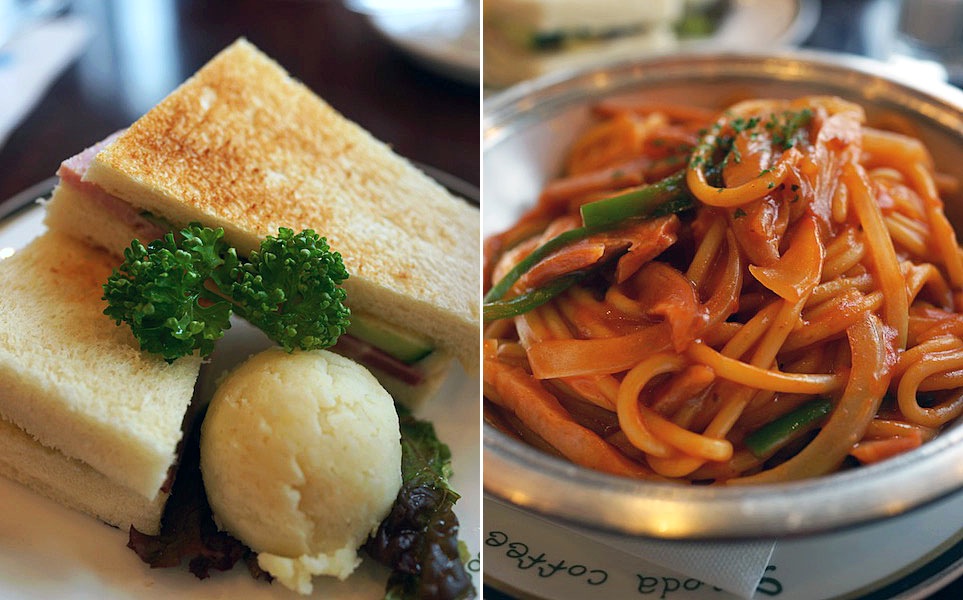 銀の器にやってくる「イタリアン」という名前の「ナポリタン」スパゲティー。