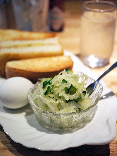 シャキシャキとしたレタス独特の食感も、決して損なわれているわけじゃない、けれどバサバサ、奥歯で暴れる感じがなくて朝の口にはやさしいゴチソウ。