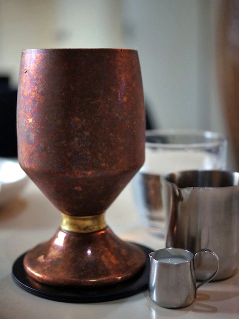 プシュッと蒸気であっためて、エスプレッソマシンの横におくとたちまちカップの上の蒸気が乾いてく。