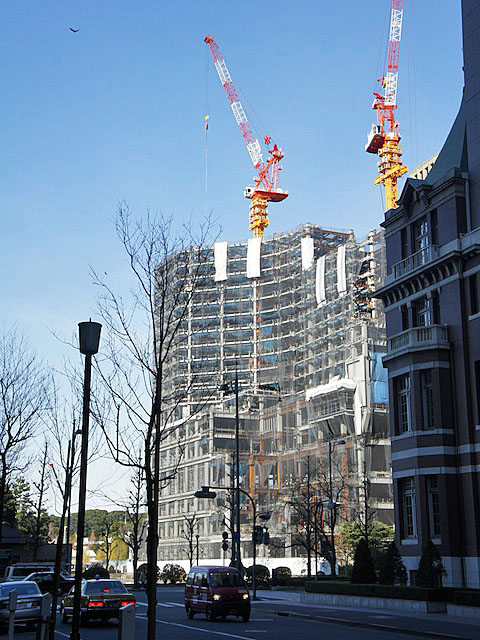 皇居のお堀の付け根では、ずっと準備が進んでたパレスホテルの建て替えビルが、とうとう姿を現しはじめた。