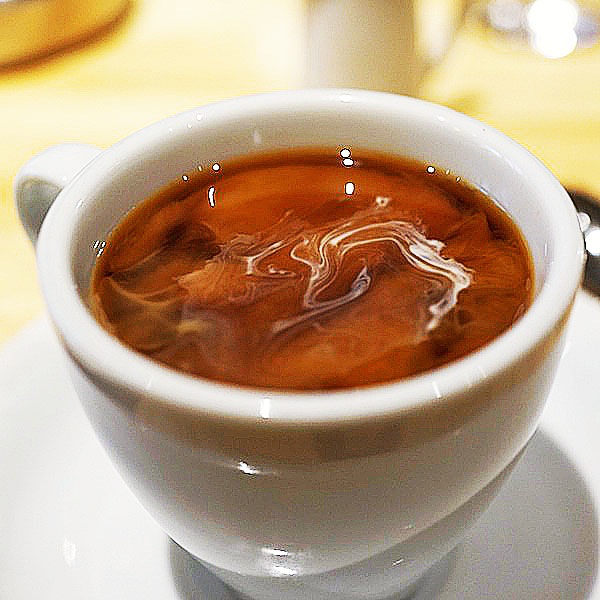 キッパリとして鮮やかな香りと苦味が特徴的なコーヒーで、だからミルクを入れるとふくよかになる。