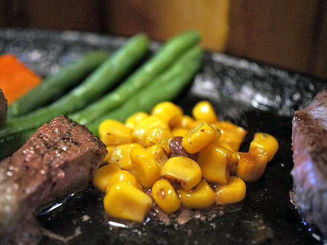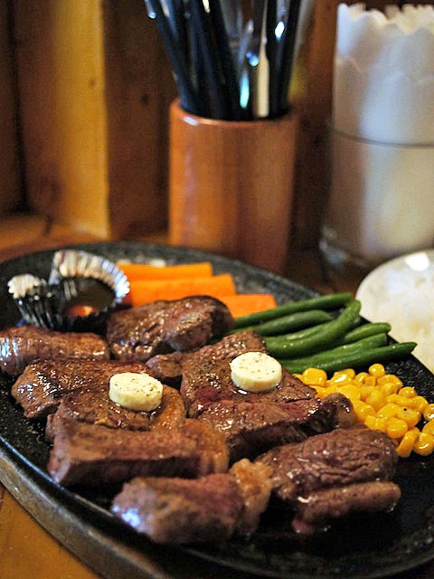 ステーキのおいしい味は噛み締める味…、だからこうした肉のサイズに対するこだわりがとてもウレシイ、オキニイリ。