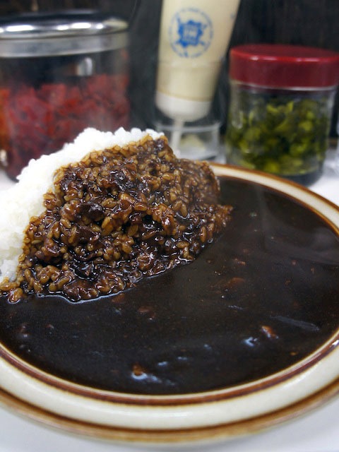 しゃもじでキレイな山脈型に形どられたご飯も、湯気立てるほど熱々で、それがカレーの熱さ、辛さに拍車をかける。