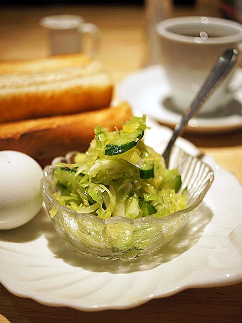 酸味がきいてて、しかも砂糖を入れなくってもほんのり甘い昔ながらの喫茶店的コーヒーで、なによりカップがこじんまりして、グイッとおいしく飲みきれる。
