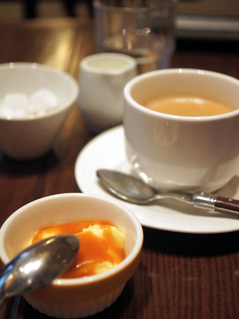 食後のデザートが少量だけど味わい濃厚なプリンの上に塩キャラメルのソースがたっぷりかかったもので、なかなか旨い。
