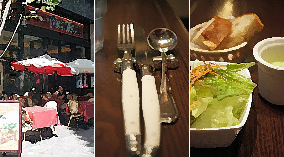 パラソルの下でご婦人方が小粋なランチをたのしむ姿が、街の景色になっている。