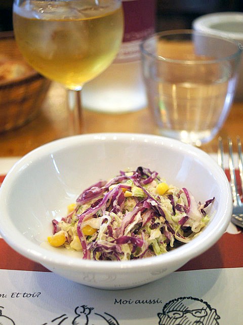 それにツナの缶詰をタップリ加えて寝かして仕上げたコールスローのようなサラダで、贅沢なモノはひとつも使っていないのに、これがおいしい。