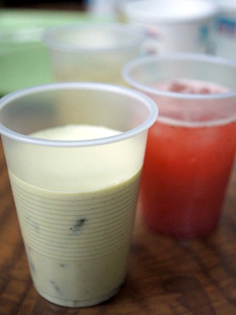 今日のフルーツジュースはキウイとイチゴにそれからアボカドミルクというモノ。