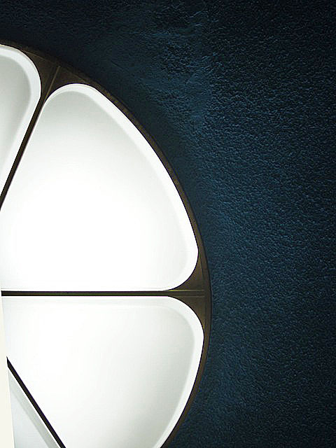 天井見上げてそこにくっついている照明もオリジナルで、多分、オレンジとかのフルーツをイメージしたデザインなんでしょう…、これが一旦壊れてしまうともう交換がきかないモノで、「修理じゃなくて修復になっちゃう」んだそうであります、見事なり。