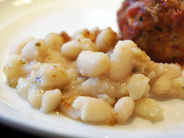 白いんげんをブイヨンでやさしく煮こんで、オリーブオイルで風味をつけたイタリア料理の野菜料理の定番のひとつ。