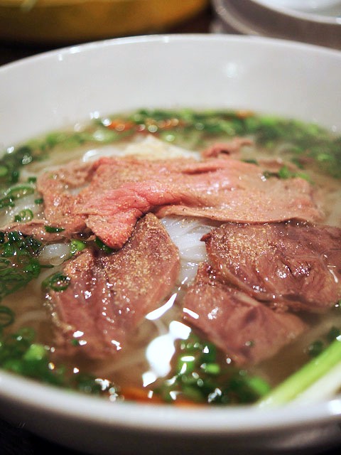 熱々スープに触れて肉に熱が入ってき表面チリッと、けれど基本はレアというそのムッチリとフォーのツルツルムチムチとした食感たのしい。