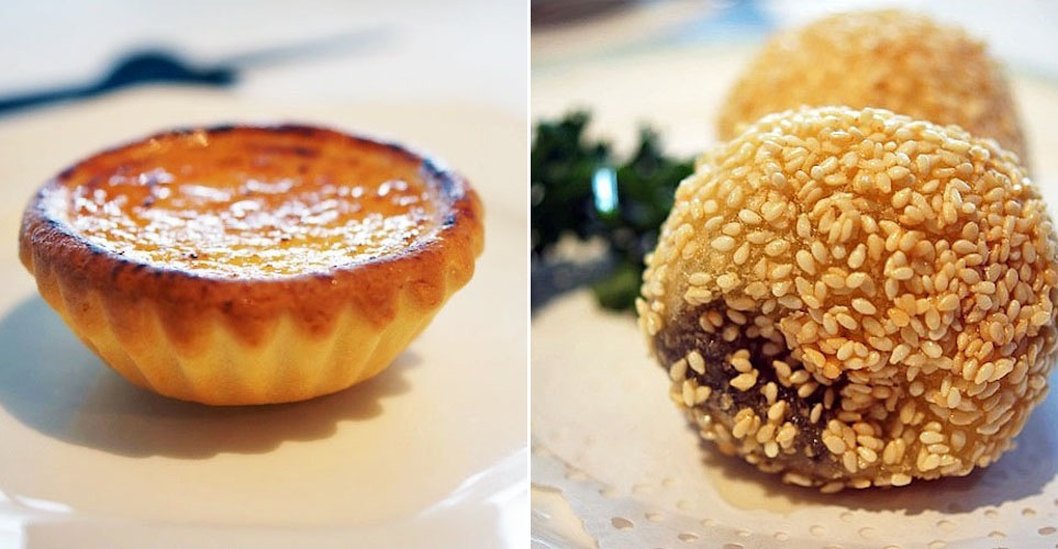 杏仁豆腐にマンゴープリン、タピオカココナッツミルクが冷たいデザートで、エッグタルトと胡麻団子という熱い点心という品揃え。