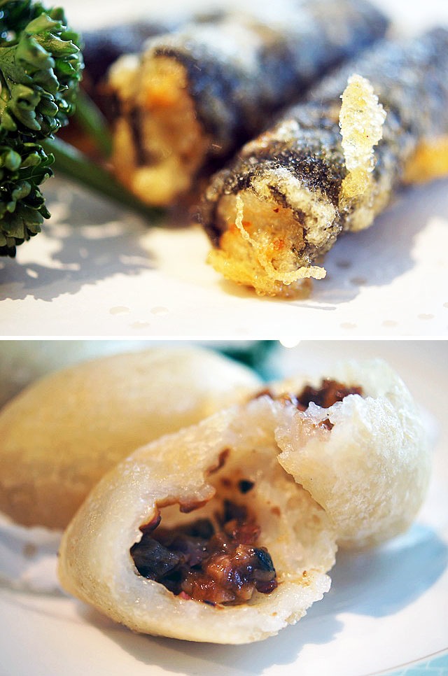 感心したのがエビを海苔でくるんで揚げた春巻き風の揚げ点心。