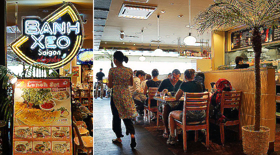 バインセオって何?って人のためにでしょう…、「ベトナム焼き」って日本名をつけて店頭、店内のデジタルサイネージでそれが焼けてるところをずっと流してる。